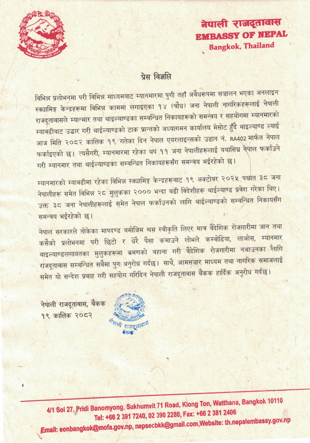 Press Release: Regarding the rescue of 14 Nepali citizens.